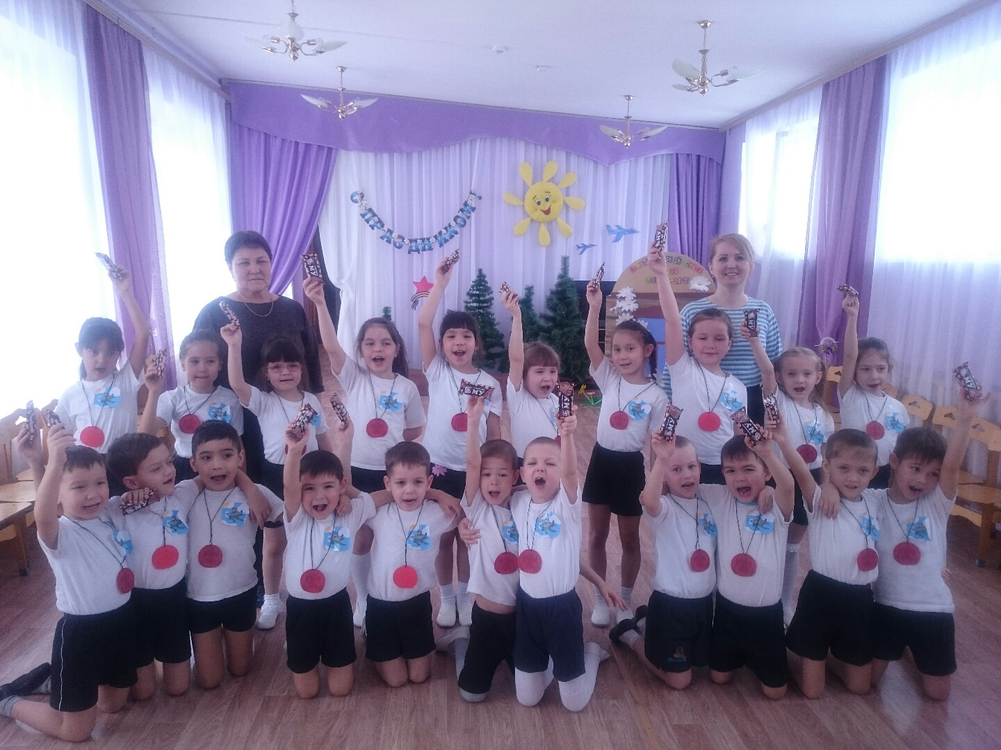 В нашем детском саду прошел музыкально-спортивный праздник, посвященный Дню защитника Отечества. На празднике воспитанники пели песни и читали стихи о защитниках России, танцевали. Интересно и весело прошли эстафеты «С кочки на кочку», «Проползи по ущелью». Дети показали всю свою ловкость, силу и смекалку, перетягивали канат. Все получили эмоциональный заряд и желание служить в рядах российской армии!
