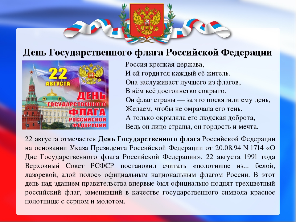 22 августа в России отмечается День Государственного флага Российской Федерации