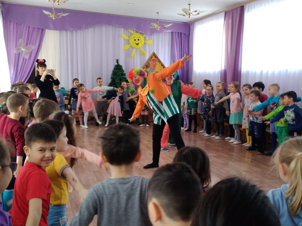 В музыкальном зале детей встречали клоуны Смешинка и Веселинка, которые вместе с детьми пели, танцевали и играли. В конце праздника ребят ждало сладкое угощение.