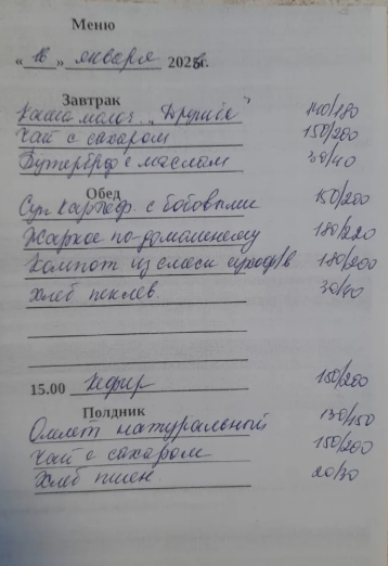 Меню ежедневного горячего питания